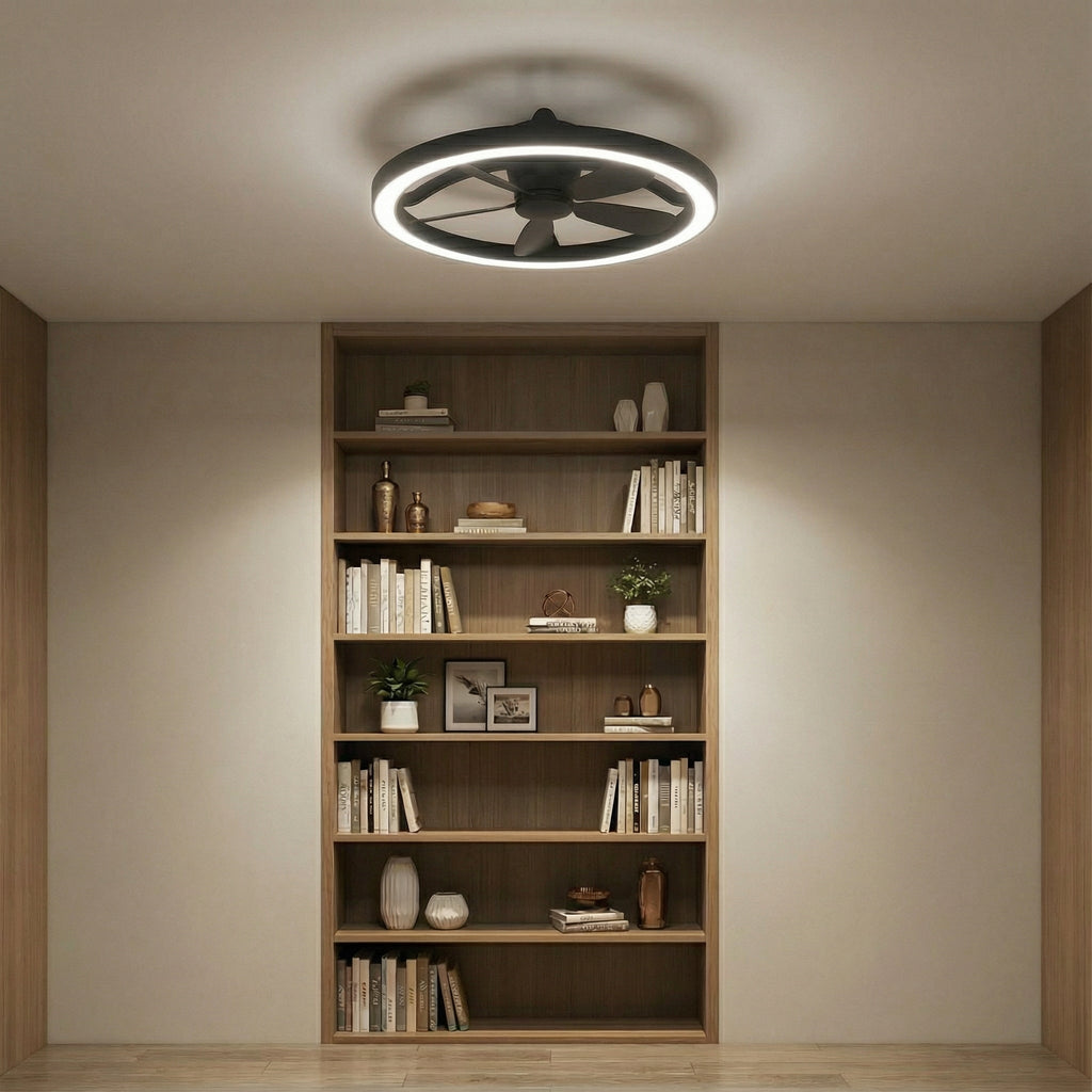 Deze LED plafondlamp met geïntegreerde ventilator combineert sfeervolle verlichting en comfortabele luchtcirculatie in één strak ontwerp. Ideaal voor woonruimtes én kantoren.