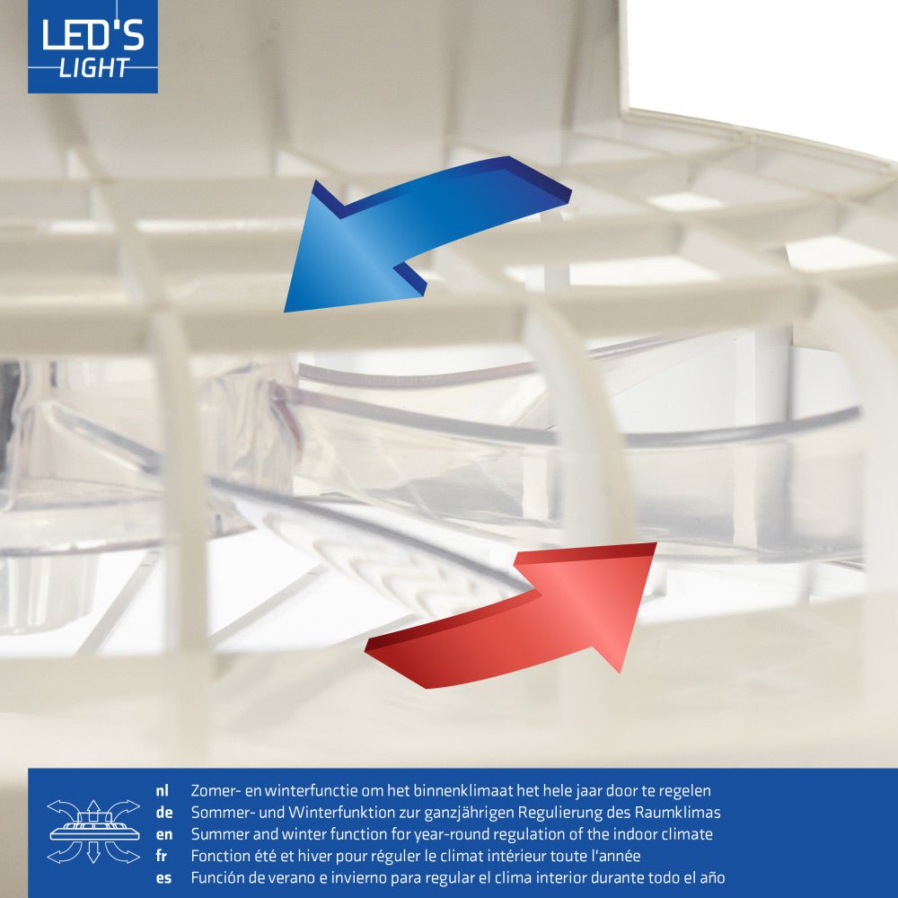 Het product zorgt voor algemene ruimteverlichting en ondersteunt tegelijkertijd de luchtcirculatie. In de zomer zorgt de ventilator voor een verkoelend effect. In de winter verdeelt hij de warme lucht die zich onder het plafond ophoopt, wat een efficiëntere verwarming ondersteunt en kan bijdragen aan een lager energieverbruik.