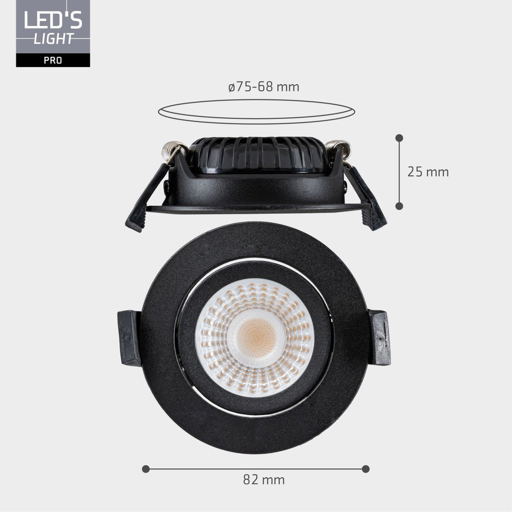 LED's Light PRO downlight inbouwspot Ø 68mm - Kantelbaar - Spatwaterdicht - Dim to Warm - Zwart